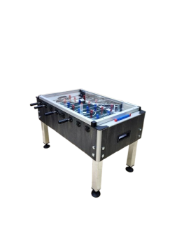 Jetonsuz camlı langırt masası kasası 30 cm yüksekliğinde ve 25 mm kalınlığında suntalamdır. Masanın üzeri 4mm kalınlığında temperli camla kapatılmıştır. Masa ayakları krikolu ve korozyona dayanıklı eloksal kaplamalı alüminyum malzemedir. Kollar 18 mm çelik çekme krom kaplamalıdır. Langırt masasının kasasının kale arkalarında free top bölümü vardır ; top gol olduğu zaman bu bölüme düşer. masa içerisinde 15 adet langırt topu bulunmaktadır.