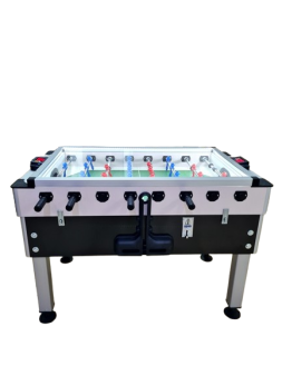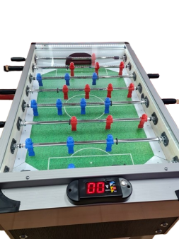 Ticari langırt masası dijital göstergelidir. Krikolu ayaklar 80mm x 80mm korozyona dayanıklı eloksal kaplamalı alüminyum profildir. Oyuncu boruları ST 52 18mm x 2 mm çelik çekmedir ve teleskobiktir rakip tarafa çıkmaz. Kasa içinde kilitlenebilen jeton kutusu mevcuttur. Makinamızın üstü darbeye dayanıklı 4mm temperli camla kapatılmıştır. Bir adet elektronik para tanıma mekanizması mevcuttur. İç saha aydınlatma şerit led ile yapılır oyun esnasında göz almıyacak bölümdedir. Dört hane elektronik jeton numaratörü işlemci kart üzerinde bulunmaktadır. Kasa önünde bulunan santra aparatı sayesinde toplar langırt dışına çıkmaz. İşlemci kartı gol olduğunda seçmeli FB, GS, BJK ve TS takımlarının taraftar müziğini çalar ve scor tablosunda gösterir.